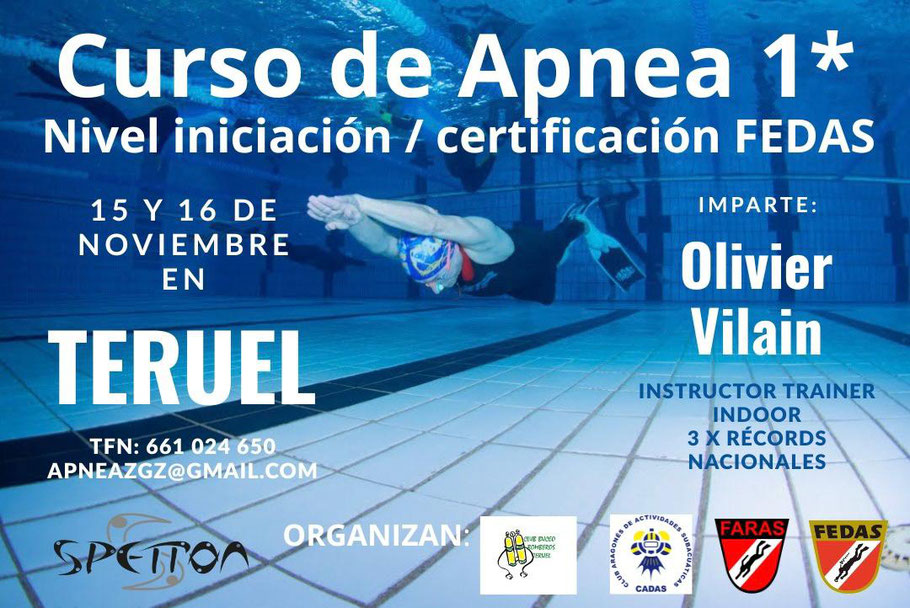 El día 23 de abril tendrá lugar el V Campeonato de Aragón de Apnea Indoor en la piscina del Polideportivo de Agustinos.