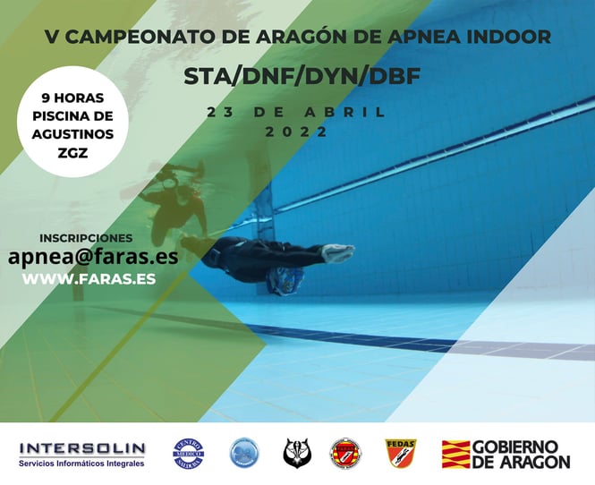 El día 23 de abril tendrá lugar el V Campeonato de Aragón de Apnea Indoor en la piscina del Polideportivo de Agustinos.