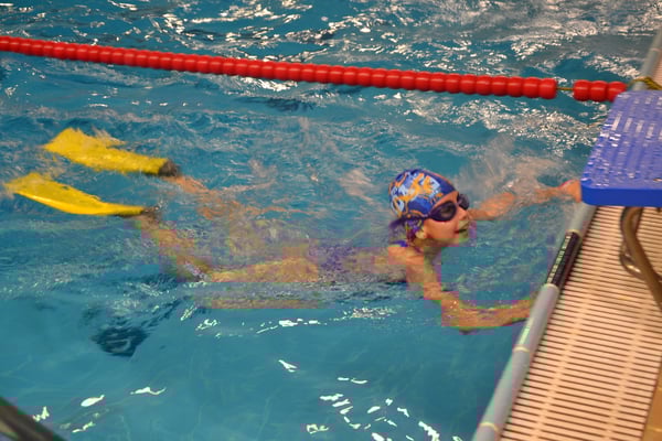 Natacion con Aletas peques jugando