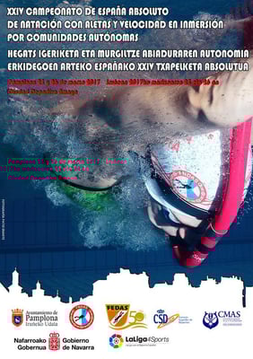Los días 24, 25 y 26 de marzo tendrá lugar en Pamplona en la piscina de Amaya el Campeonato de España Absoluto por Autonomías de Natación con Aletas y Velocidad en Inmersión.