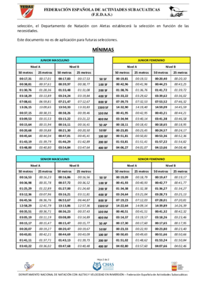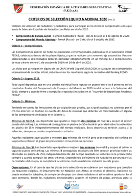 Criterios de Selección Federación Española. Natación con Aletas 2020.