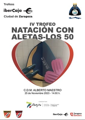 El sábado 25 de noviembre en las instalaciones del CDM Alberto Maestro tendrá lugar el IV Trofeo Ibercaja Ciudad de Zaragoza los 50'S de Natación con Aletas.